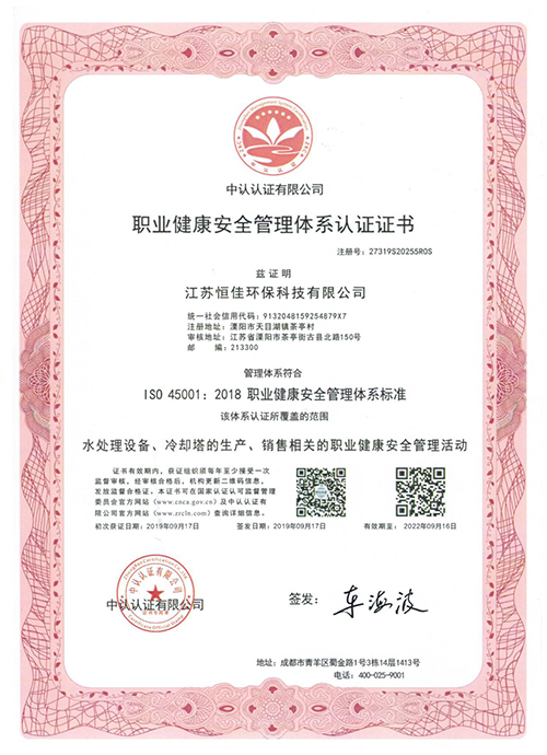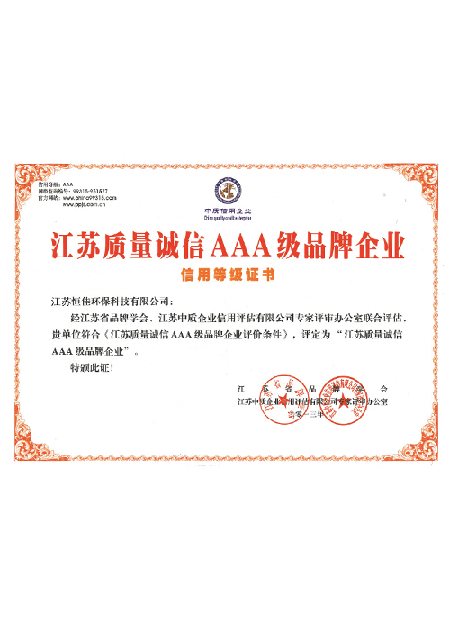 經(jīng)過多年來的不懈努力,公司已經(jīng)形成良好的管理和運(yùn)作體系。獲得了<江蘇質(zhì)量誠信3a品牌企業(yè)>榮譽(yù)證書 并已通過ISO9001質(zhì)理管理體系認(rèn)證、ISO1400環(huán)境管理體系標(biāo)準(zhǔn)及 ISO45001職業(yè)健康管理體系標(biāo)準(zhǔn)。